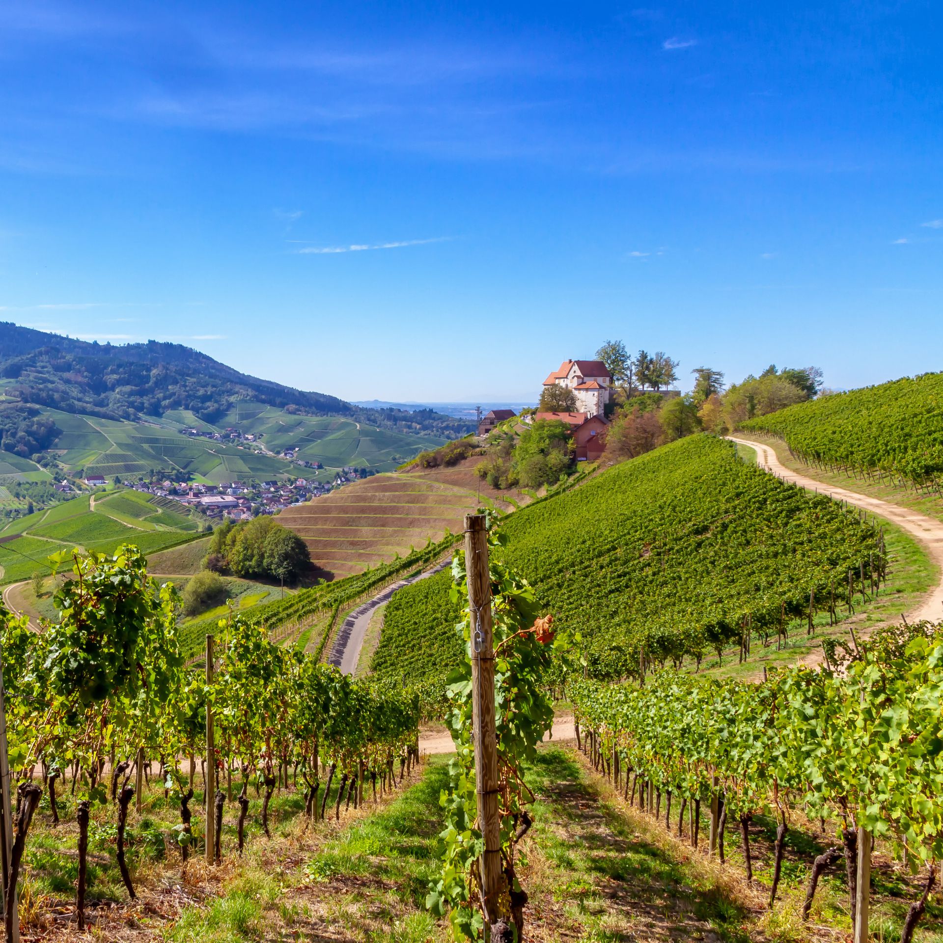 Hoch über den Weinbergen von Durbach thront das historische Schloss Staufenberg. Die Schlossgastronomie mit Vesperplatte, Wurstsalat und Riesling bei Panoramablick auf die Weinberge, den Schwarzwald und die Rheinebene ist ein Erlebnis für alle Sinne.