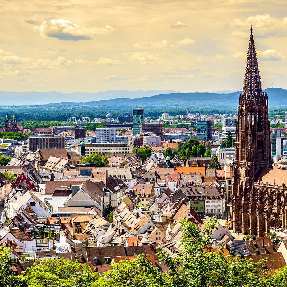 Die südlichste Großstadt Deutschlands Charmante Altstadt, imposantes Münster, die berühmten "Bächle" und eine der sonnigsten Städte Deutschlands. Freiburg begeistert mit einem unvergleichlichen Flair zwischen Schwarzwald und Kaiserstuhl. Die Stadt hat sich in den letzten Jahren auch als Gourmet-Hotspot etabliert: fünf Michelin-Sterne-Restaurants befinden sich mittlerweile hier.